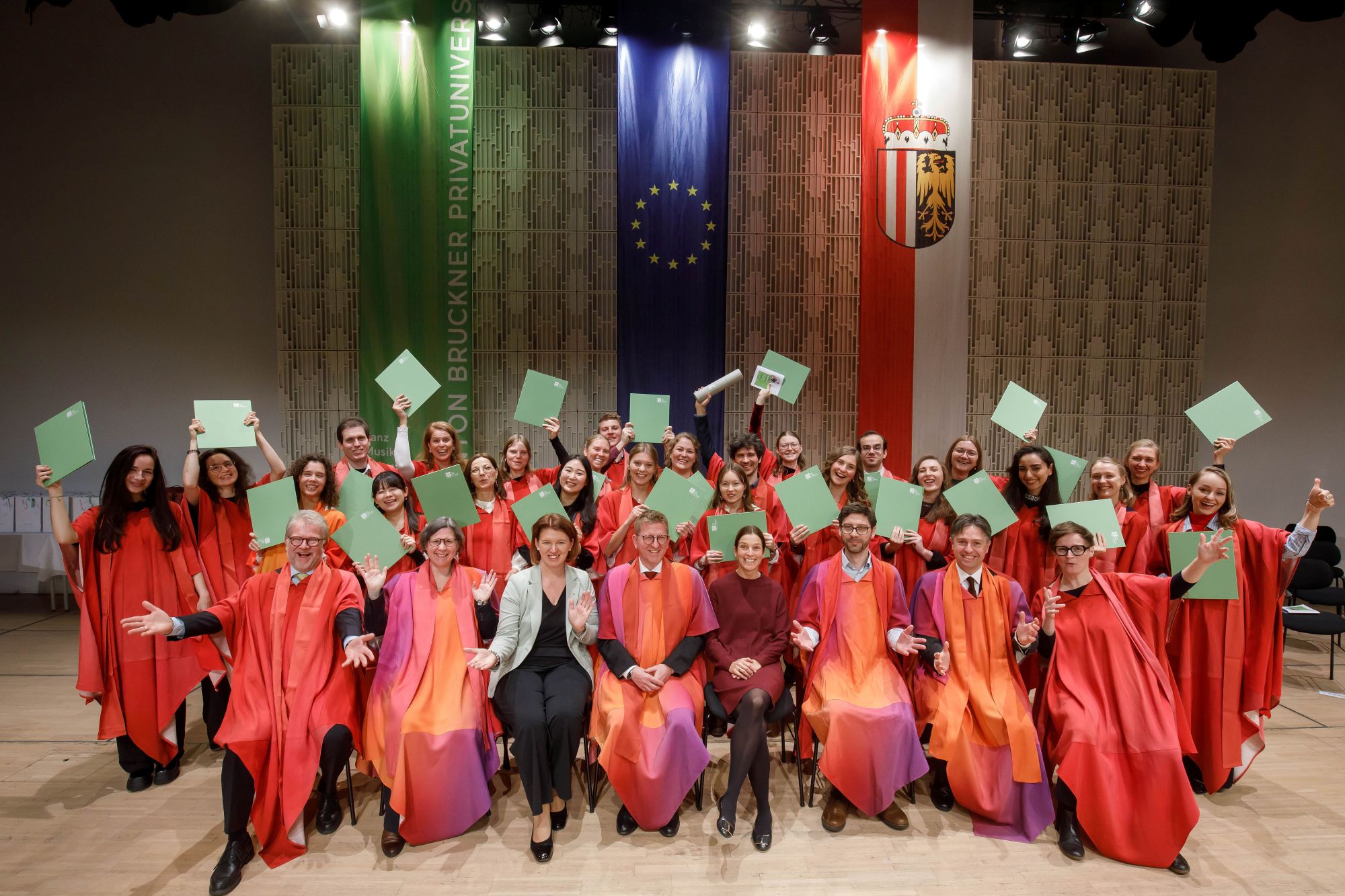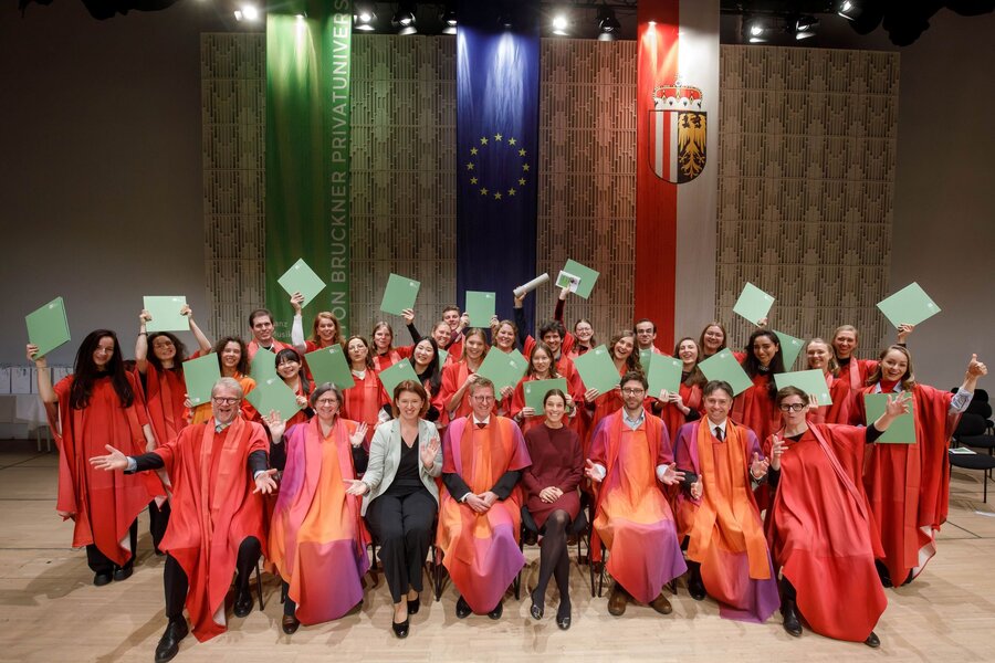 Die Sponsionsfeiern an der BrucknerUni sind die perfekte Gelegenheit, um in festlicher Atmosphäre den Abschluss des eigenen Studiums - egal ob Bachelor, Master oder Doktorat - zu feiern. Nach dem Festakt mit Reden und musikalischen Beiträgen sowie der feierlichen Überreichung der Abschlusszeugnisse stoßen die teilnehmenden Studierenden mit Familie, Freund*innen und Kommiliton*innen mit einem Glas Sekt an.