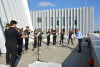 Open Air bei Traumwetter über den Dächern von Linz: Das Institut für Blechblasinstrumente und Schlagwerk begeisterte am 14. Juni mit seiner Institutsvorstellung im Park der Bruckneruniversität.