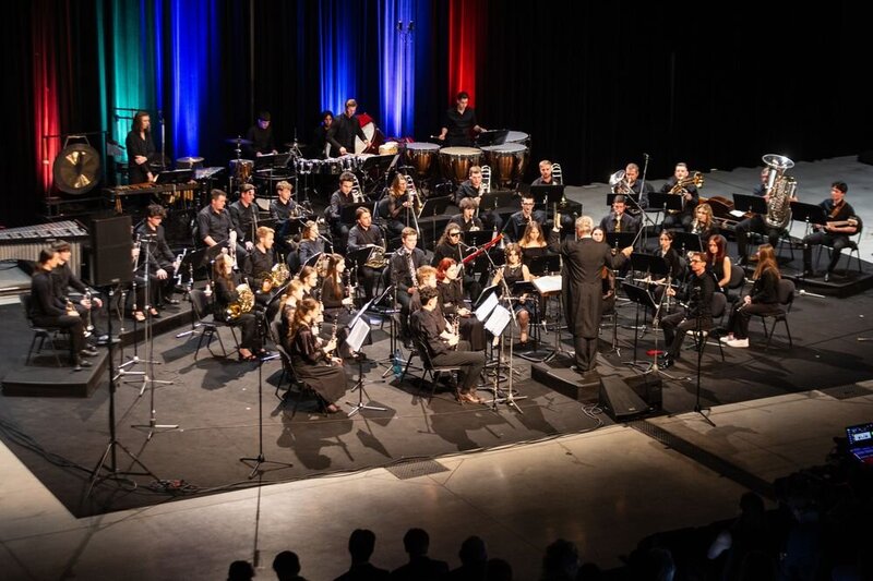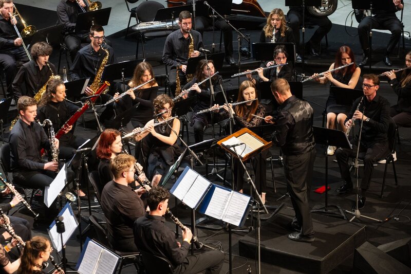 Begleitet von Peter Tavernaro, Norbert Girlinger und Petra Hinterholzer reisten rund 40 Studierende mit dem Bus an, um eigene Ensemblebeiträge zu präsentieren und den Beiträgen der tschechischen Kolleg*innen zu lauschen. Den Höhepunkt bildete der Mambo aus dem Musical West Side Story, für den Studierende beider Länder miteinander auf der Bühne standen.