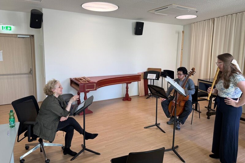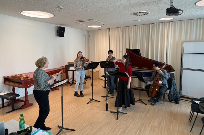 In zwei Vorträgen ging es darum, wie Notation, Deklamation und Ornamentik zusammenwirken, um Affekte wirklich „sprechend“ zu gestalten. Ausgehend vom Text (Silbenlänge, Phrasierung) wurde besonders das Ornament accent beleuchtet: während es in historischen Quellen sehr häufig zu finden ist, wird es im heutigen Musizieren aber oft unterschätzt. In den Coachings wurde dieses Wissen direkt auf das erarbeitete Repertoire übertragen: vom Text ausgehend hin zu einer lebendigen Phrasierung, sowohl für Sänger*innen als auch für Instrumentalist*innen.