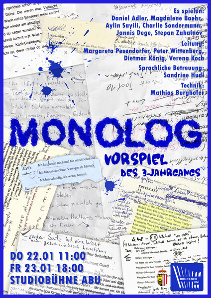 Studierende des 3. Jahrgangs des Instituts Schauspiel der Anton Bruckner Privatuniversität präsentieren Monologe.