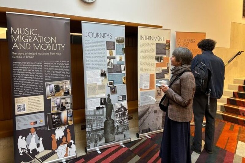 Die Ausstellung erzählt die Geschichte dieser Musiker*innen und beleuchtet damit zugleich die herausragende Bedeutung von Migration und Mobilität in der Musikgeschichte. Sie wurde vom Arts and Humanities Research Council finanziert und in Zusammenarbeit zwischen dem Royal College of Music, dem Royal Holloway, der University of London und der Universität Salzburg realisiert. Zusammen mit Norbert Meyn arbeiteten Nils Grosch (Universität Salzburg) und Peter Adey (Royal Holloway University of London) an der Ausstellung. Bis 15.11. ist sie in unserem Foyer zu sehen.