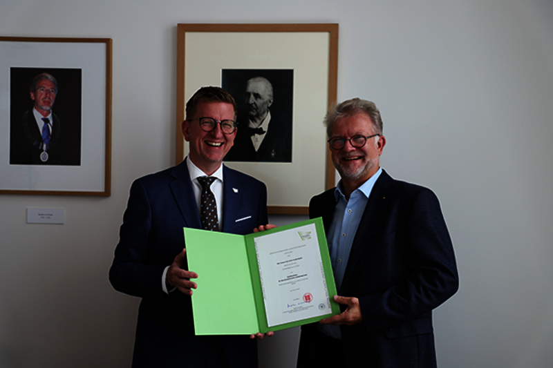 Rektor Martin Rummel bedankt sich beim scheidenden Studiendekan Wilfried Brandstötter für seinen langjährigen und engagierten Einsatz: „Willi Brandstötters kollegiale Art und seine klare Kommunikation haben wesentlich zur positiven Entwicklung des Studienbetriebs beigetragen“.