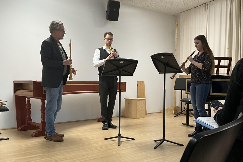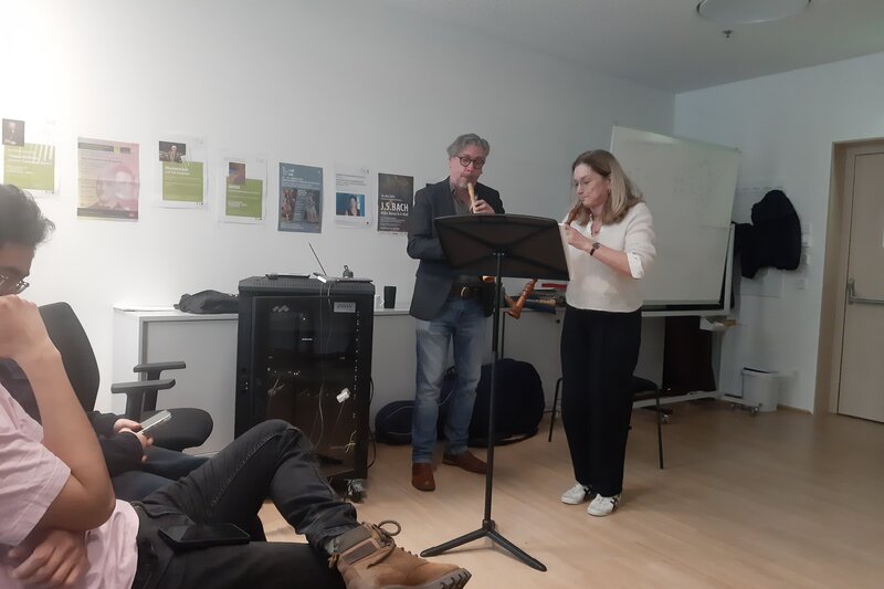 Am 25. und 26. November durfte das Institut für Alte Musik und Historische Aufführungspraxis den renommierten Musikwissenschaftler, Autor und historischen Oboisten Geoffrey Burgess zu zwei Tagen mit Vorträgen und Meisterkursen begrüßen. Seine Vorträge wurden nicht nur von den Studierenden der historischen Oboe, sondern auch von Studierenden anderer Fachrichtungen sehr geschätzt. Geoffreys wunderbar informative und aufschlussreiche Vorträge zu den Themen "Learning in the Past for the Present" und "The Practice of History: Rewriting `The Oboe´" vermittelten ein breites Spektrum an fundiertem Wissen über die Zeiten, Bräuche und Praktiken des 18. und 19. Jahrhunderts. Die Oboist*innen konnten auch individuell von den Meisterkursen profitieren, in denen er historisch informierte Aufführungspraxis mit seinen musikalischen Erkenntnissen verband.